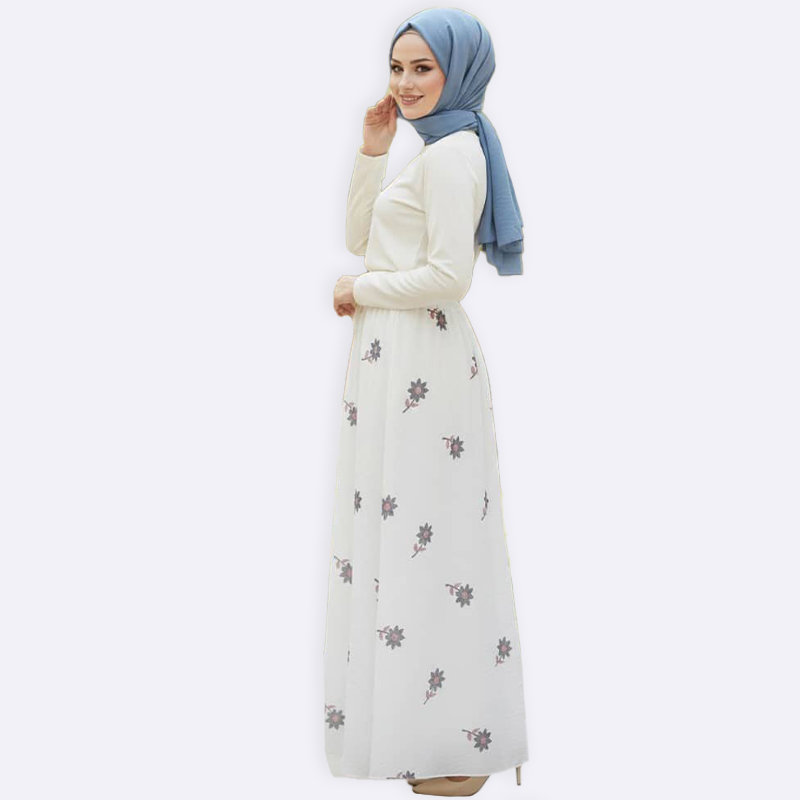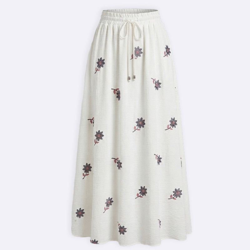 تنورة طويلة مريحة مزينة بطبعة زهرة صغيرة ذات خصر مطاطي وتصميم انسيابي