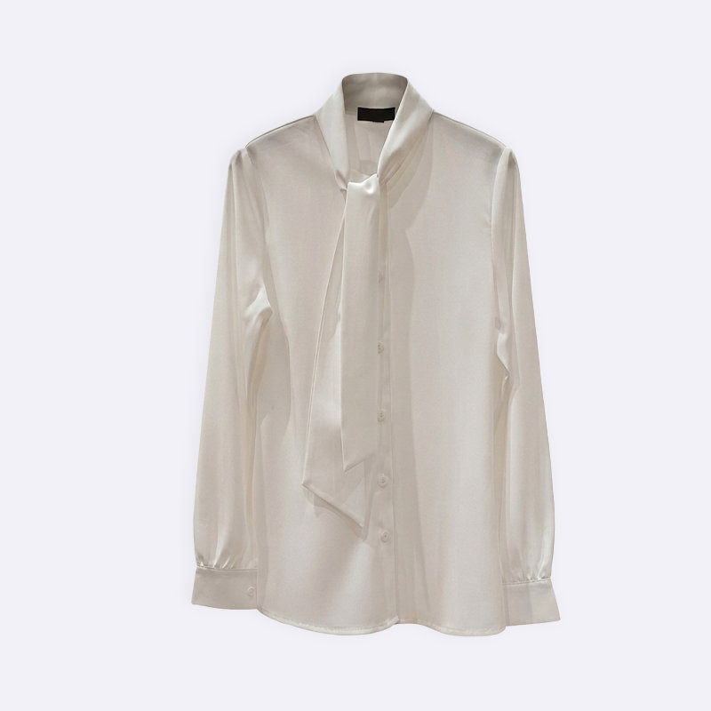 قميص أنيق بأكمام طويلة يتميز بياقة برباط على شكل فيونكة وتصميم كلاسيكي ناعم