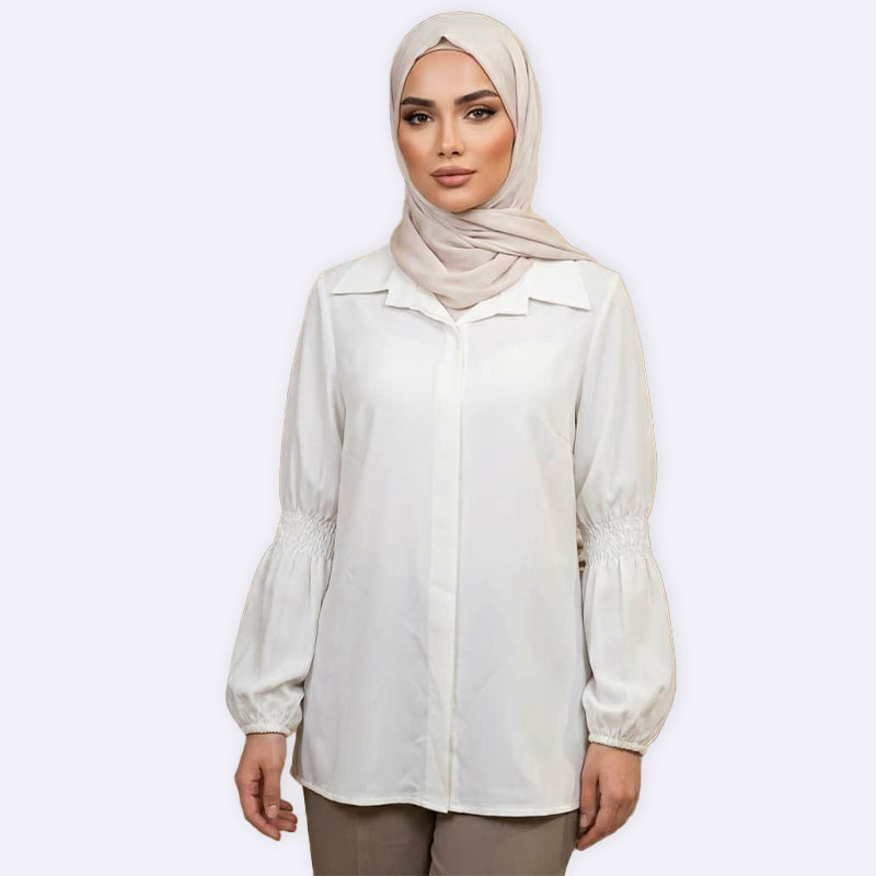 Smocked Sleeve Plain Shirt
