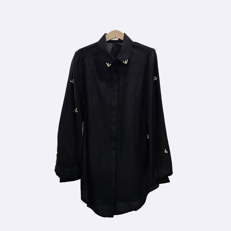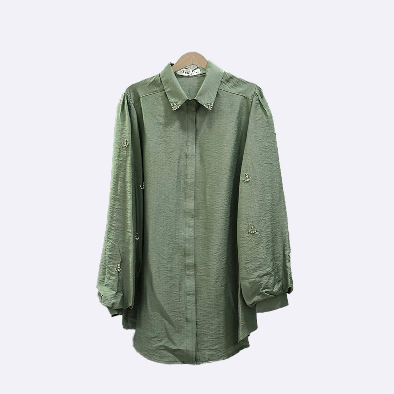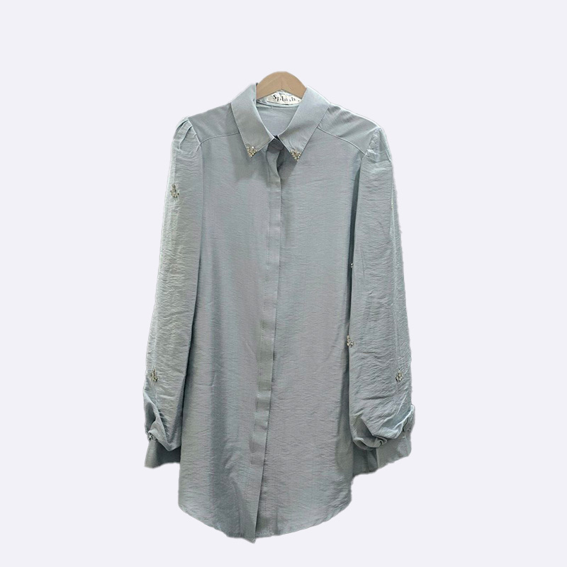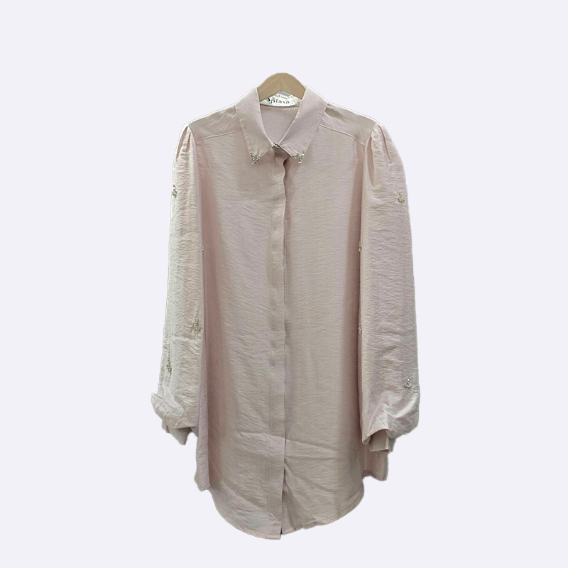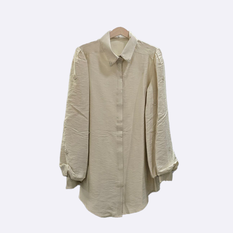 قميص نسائي أنيق مصنوع من قماش اللينن، يتميز بتصميمه الكلاسيكي مع ياقة وأزرار أمامية