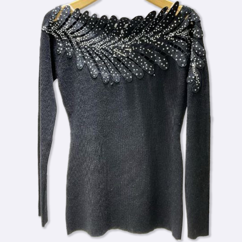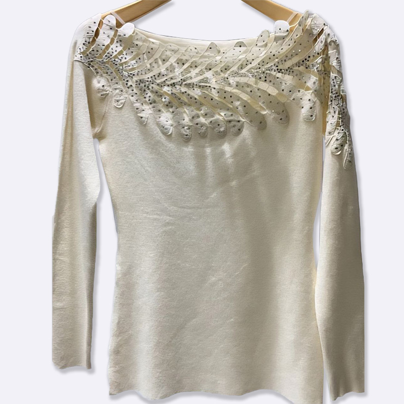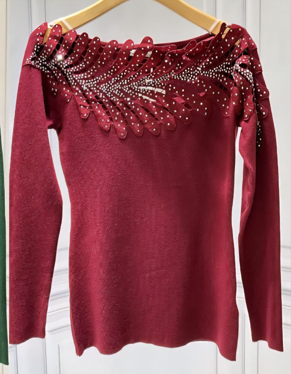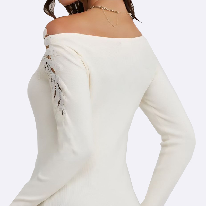 تألقي بإطلالة ساحرة مع هذا التوب الأنيق بكتف مكشوف. تصميم محبوك فاخر ومزين يضفي لمسة من الرقي والجمال على مظهرك.