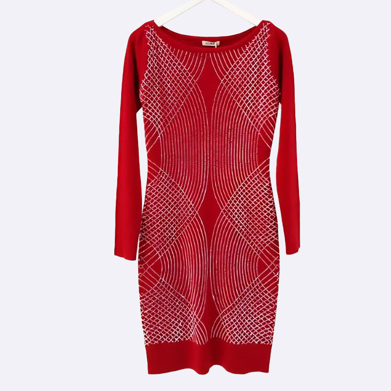 فستان قصير بأكمام طويلة بتصميم متلألئ