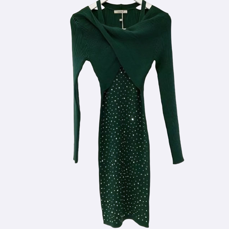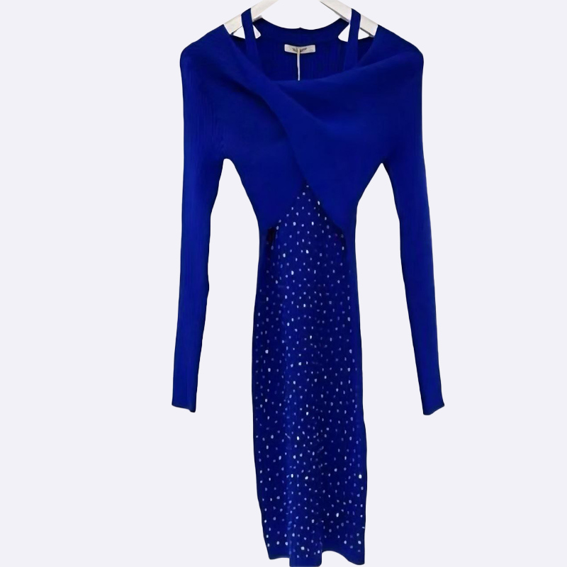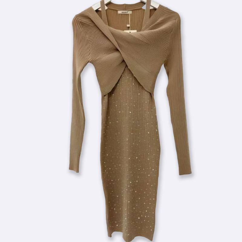 تألقي بإطلالة جذابة مع هذا الفستان الضيق المحبوك. يتميز بتصميم ملتوي أنيق وياقة مفتوحة، بالإضافة إلى زخرفة رقيقة تضفي لمسة من الأنوثة.