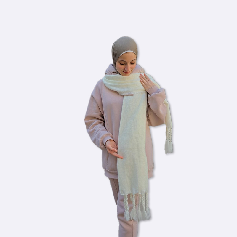 سكارف شتوي فاخر ودافئ، بملمس ناعم يشبه الموهير، يتميز بنمط كاروهات كلاسيكي أنيق وبشراشيب عند الأطراف، مثالي للتدفئة.
