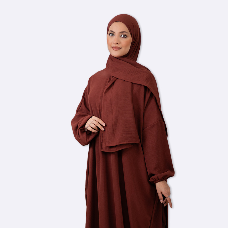 عباية أنيقة مخصّصة للعمرة، مصنوعة من خامة الماربل المريحة والخفيفة، بتصميم فضفاض يمنحك راحة كاملة أثناء الحركة. تأتي مع شال مُطابق لإطلالة متكاملة وناعمة، مثالية للاستخدام اليومي ولرحلات العمرة.