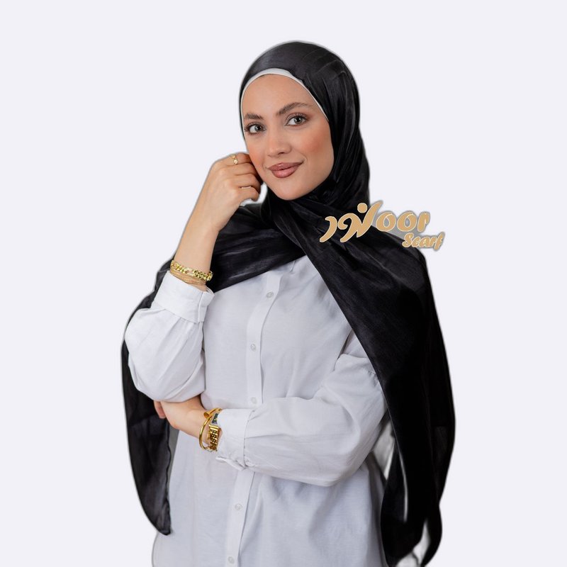 شال أنيق يتميز بلمعة خفيفة وقوام متماسك، مثالي للمناسبات والإطلالات الرسمية.