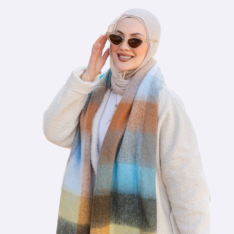 أضيفي لمسة من الأناقة إلى إطلالتك مع هذا الوشاح الكاروهات الجذاب بألوان الخريف الدافئة. تصميم عصري ومريح يجعله إضافة مثالية لخزانة ملابسك.
