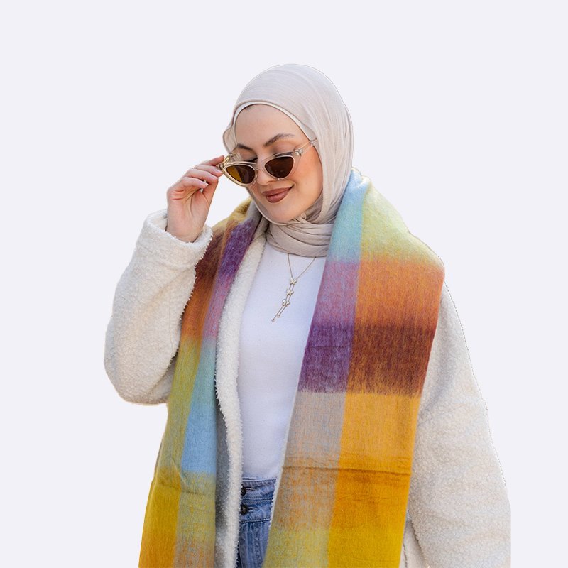 أضيفي لمسة من الألوان إلى إطلالتك مع هذا الوشاح الأنيق بنقشة مربعات. تصميم عصري ودافئ يجعله مثالياً لأيام الشتاء الباردة.
