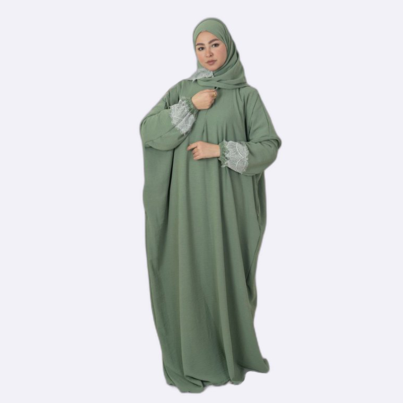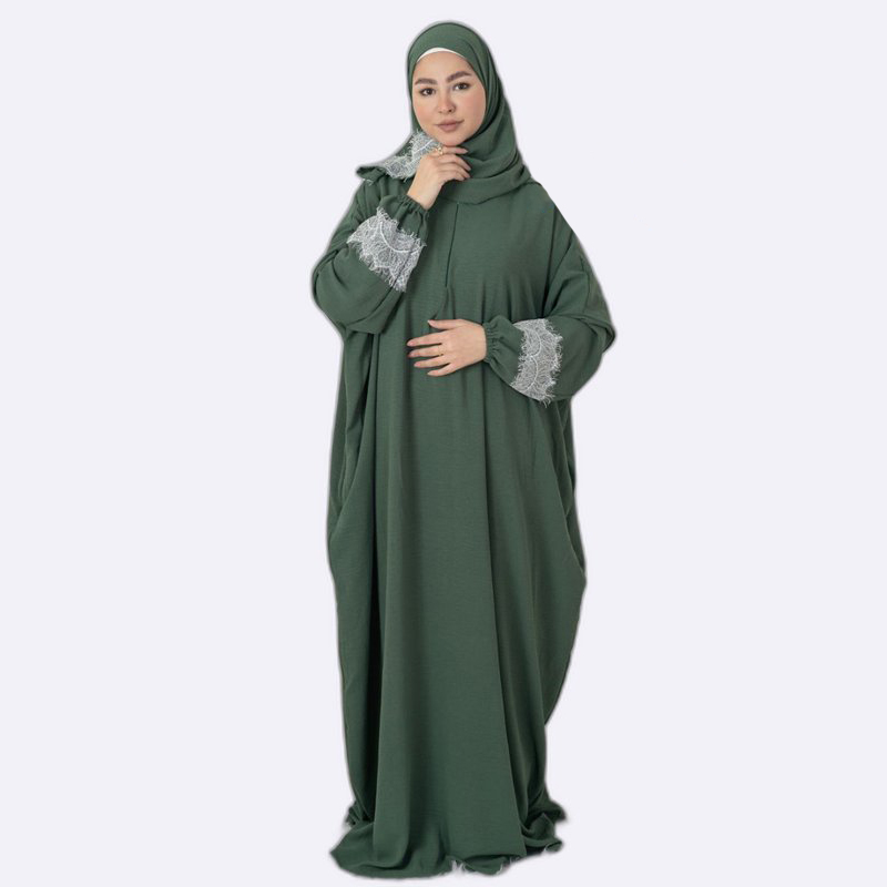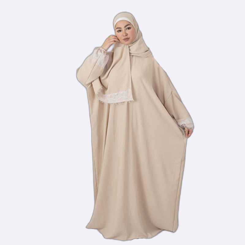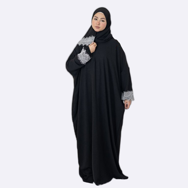Elegant Lace Trim Abaya Set