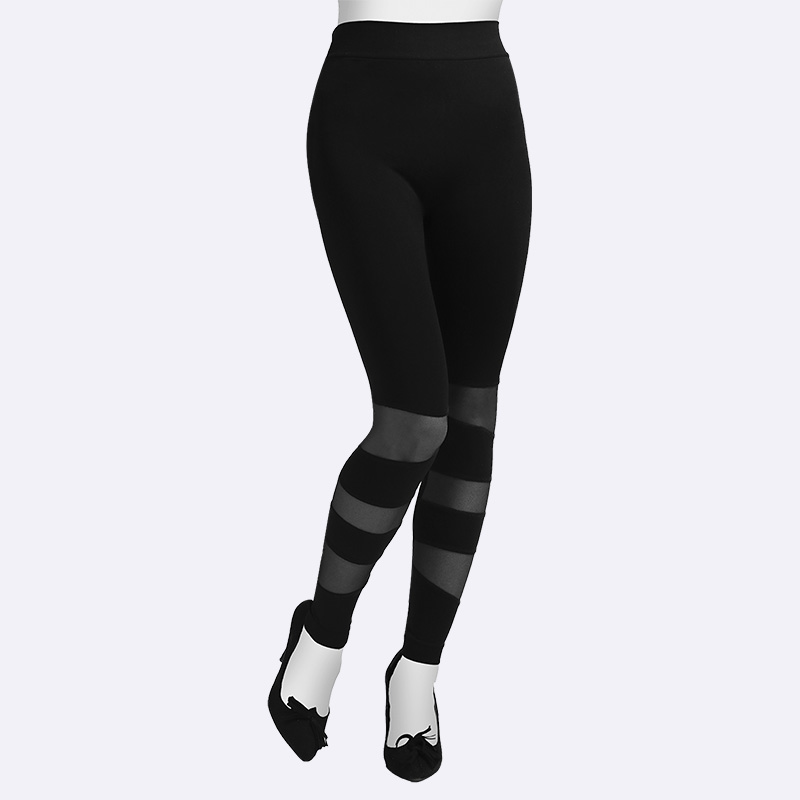 Women's Black Leggings with Sheer Mesh Stripes