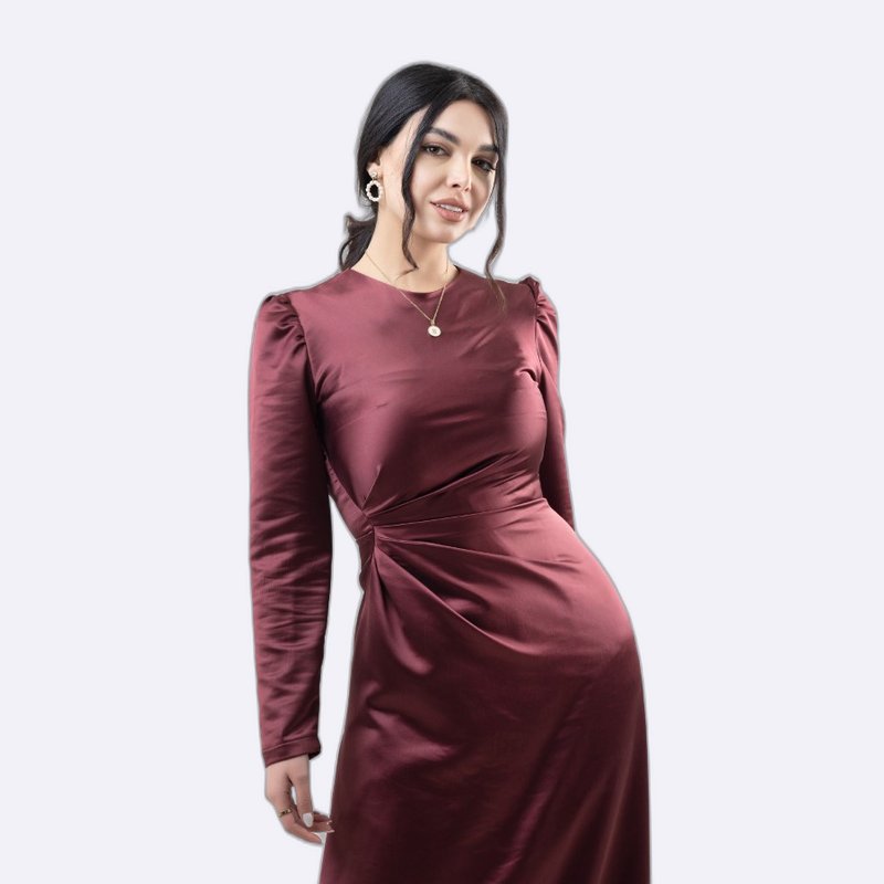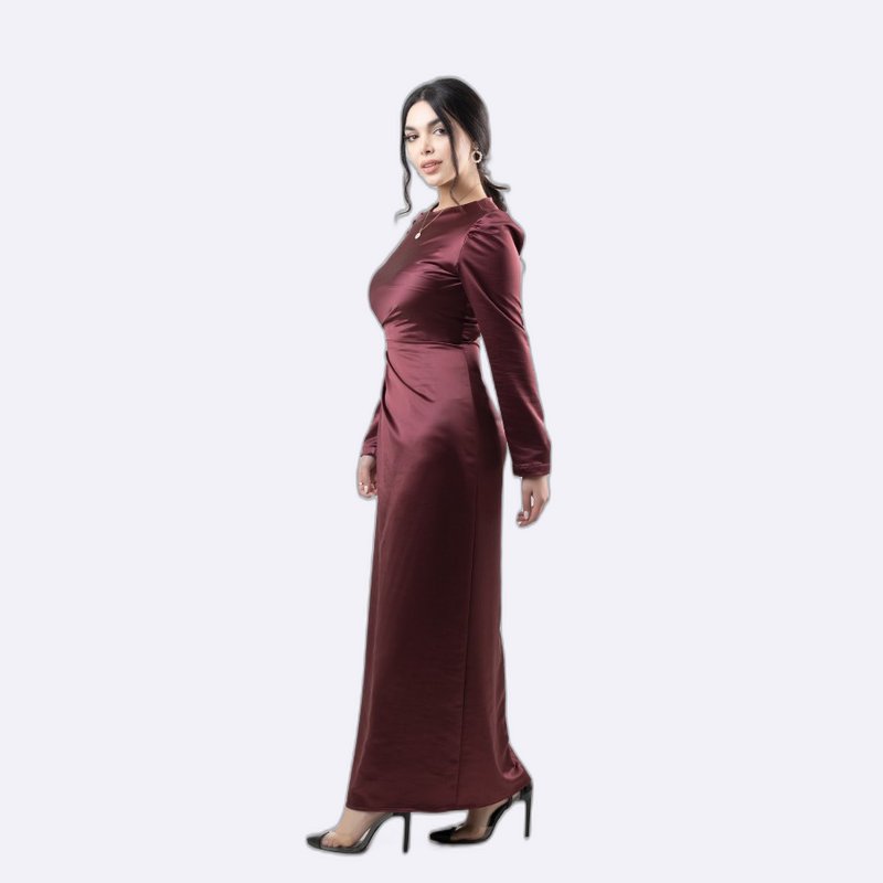 تألقي بفستان ماكسي ستان ساحر وأنيق. تصميم عصري بأكمام طويلة يجعله مثالياً للمناسبات الخاصة والسهرات. احصلي على إطلالة لا تُنسى.
