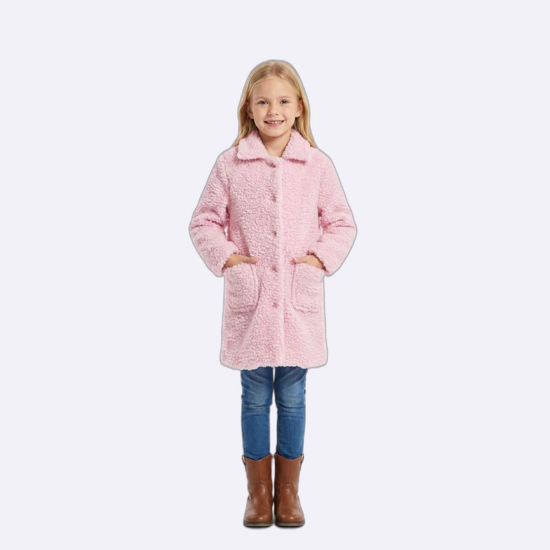 معطف شتوي بياقة مطوية وأزرار أمامية وجيوب جانبية مصنوع من قماش ناعم ودافئ