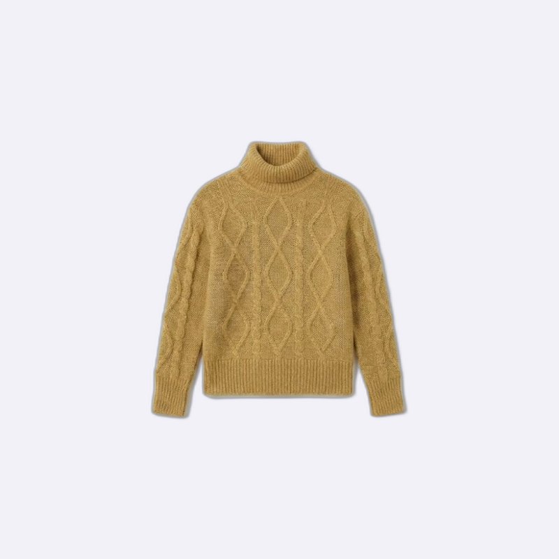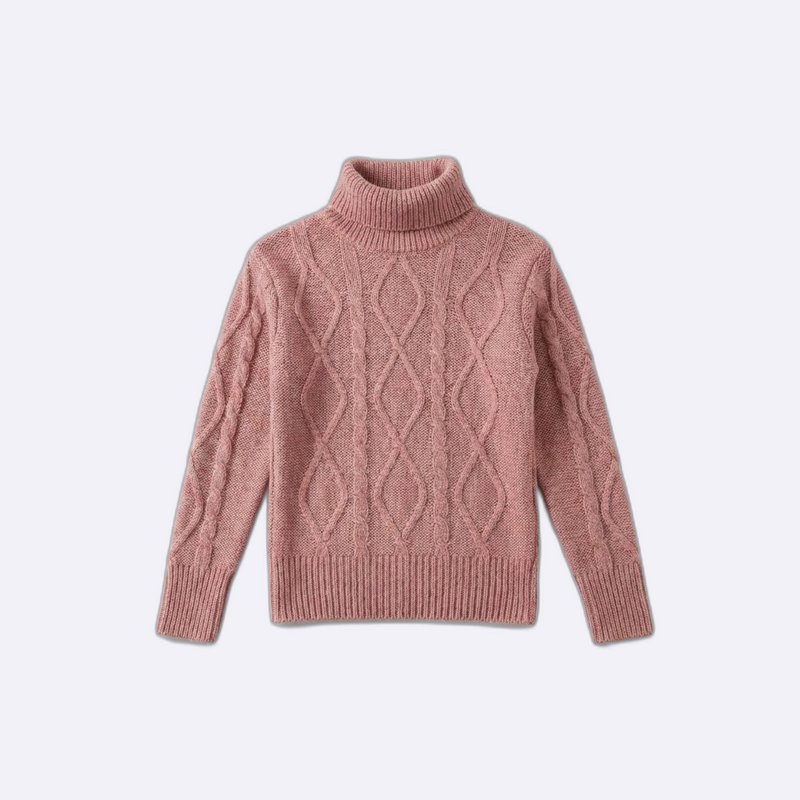 سترة صوفية دافئة بياقة عالية وتصميم محبوك بنقوش كلاسيكية وأطراف مضلعة