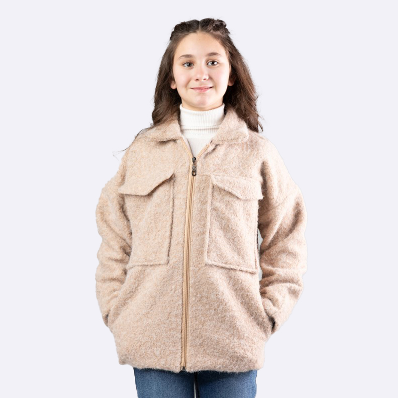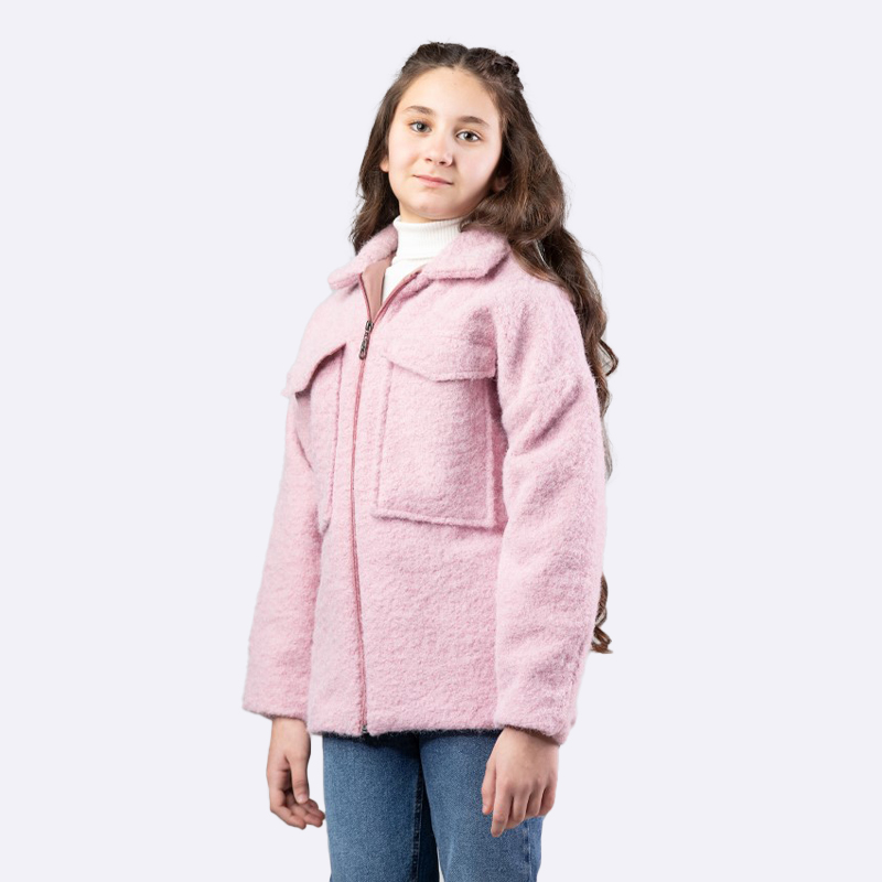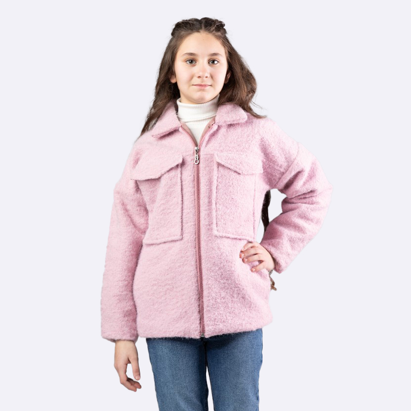 أضيفي لمسة من الأناقة إلى خزانة ملابس ابنتك مع هذا الجاكيت الرائع. يتميز بتصميم عصري ولون بنفسجي فاتح جذاب، مما يجعله الخيار الأمثل لكل المناسبات.