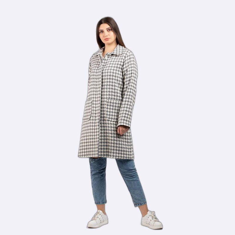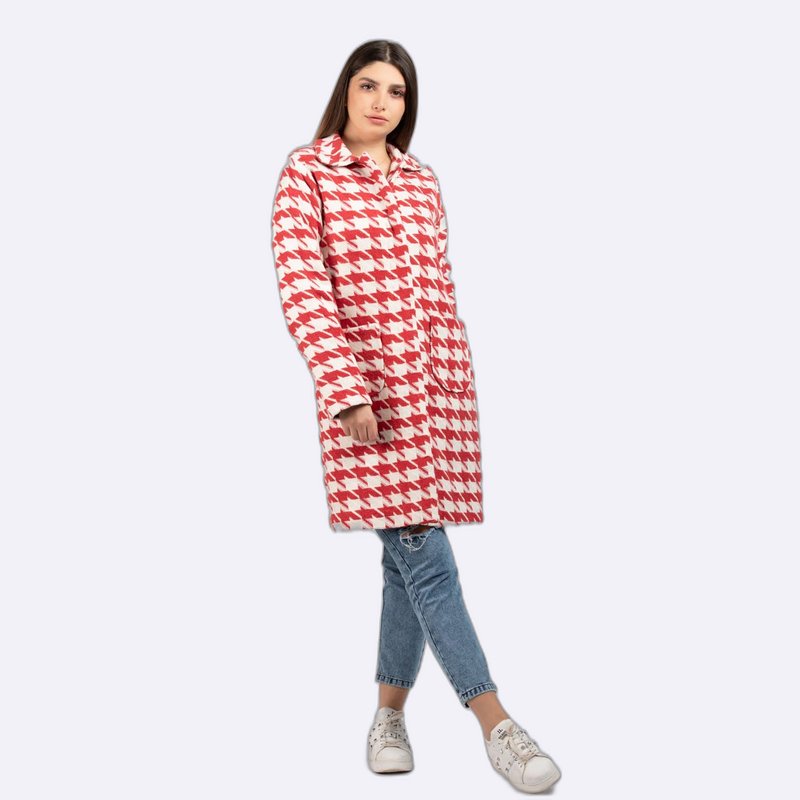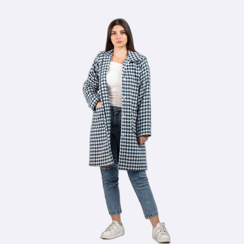 تألقي بأناقة لا مثيل لها مع هذا المعطف النسائي بنقشة جلد الأوز. تصميم عصري يضفي لمسة من الرقي على إطلالتك، ويحميك من برودة الشتاء بأسلوب أنيق.