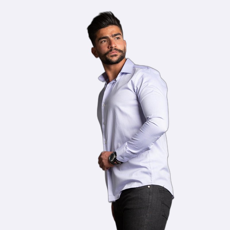 قميص كلاسيكي أنيق بأكمام طويلة وياقة مدببة، يتميز بقصة سليم فيت التي تمنح مظهراً متناسقاً وعصرياً.