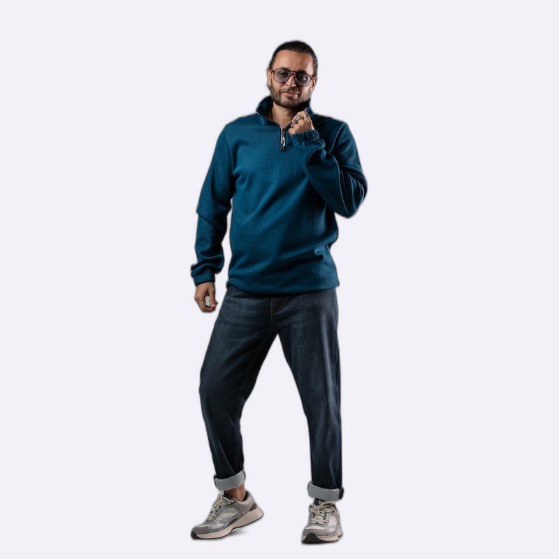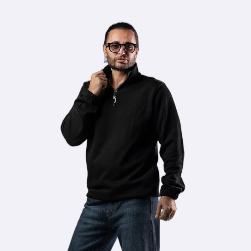 سويت شيرت بياقة مرتفعة ونصف سحاب بلون عنابي جذاب.
