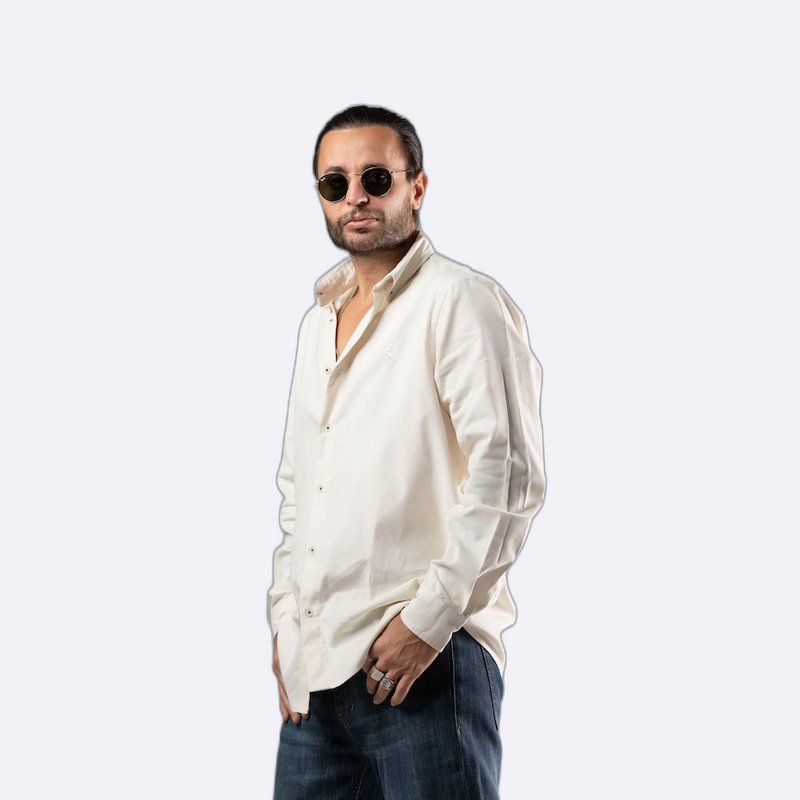 قميص كاجوال أنيق بأزرار أمامية كاملة وياقة مدببة، يتميز بقصة مريحة وشعار صغير مطرز على الصدر.
