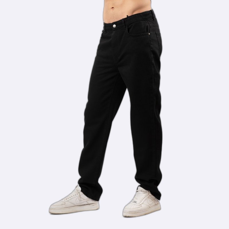 بنطال جينز كلاسيكي بتصميم بسيط وعملي، يتميز بقصة أرجل مستقيمة ونظام جيوب تقليدي مع إغلاق أمامي محكم.