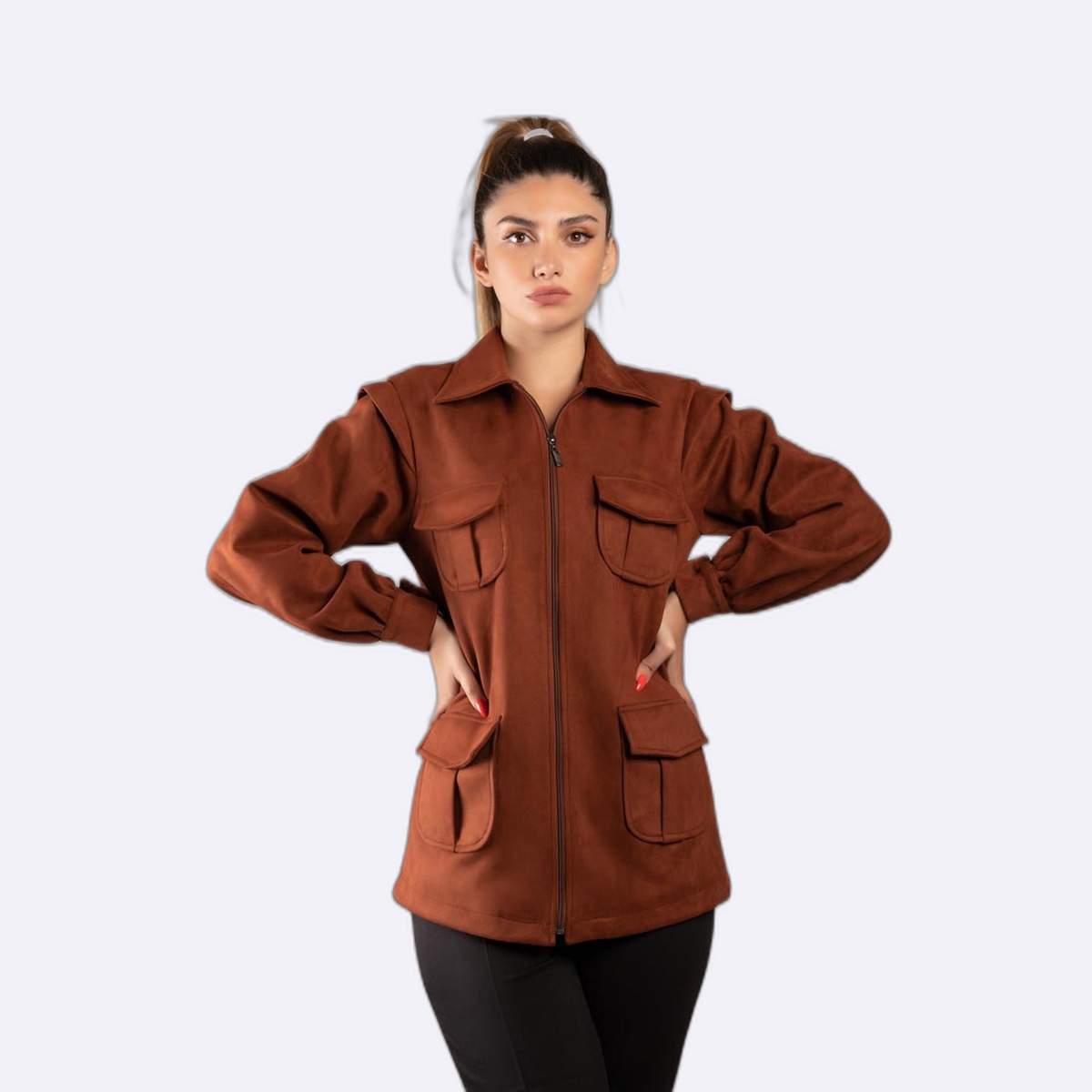 جاكيت عملي يغلق بسحاب أمامي ويتميز بأربعة جيوب أمامية بارزة وياقة قميص كلاسيكية.