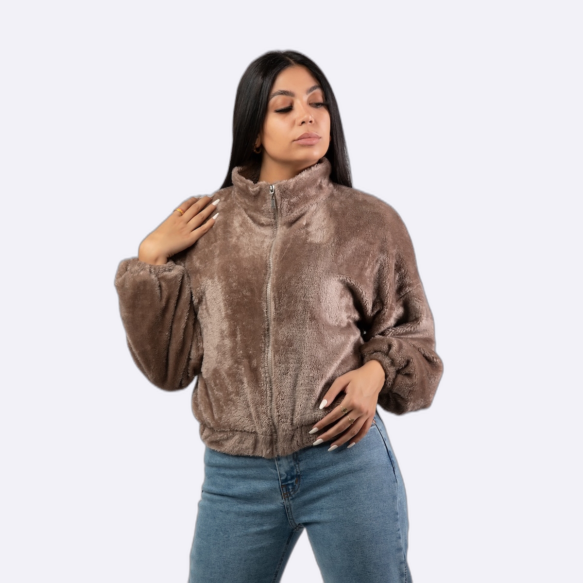 جاكيت بليزر بقصة ضيقة وأكتاف محددة، يتميز بياقة رسمية وزر إغلاق أمامي واحد مع جيوب جانبية مخفية