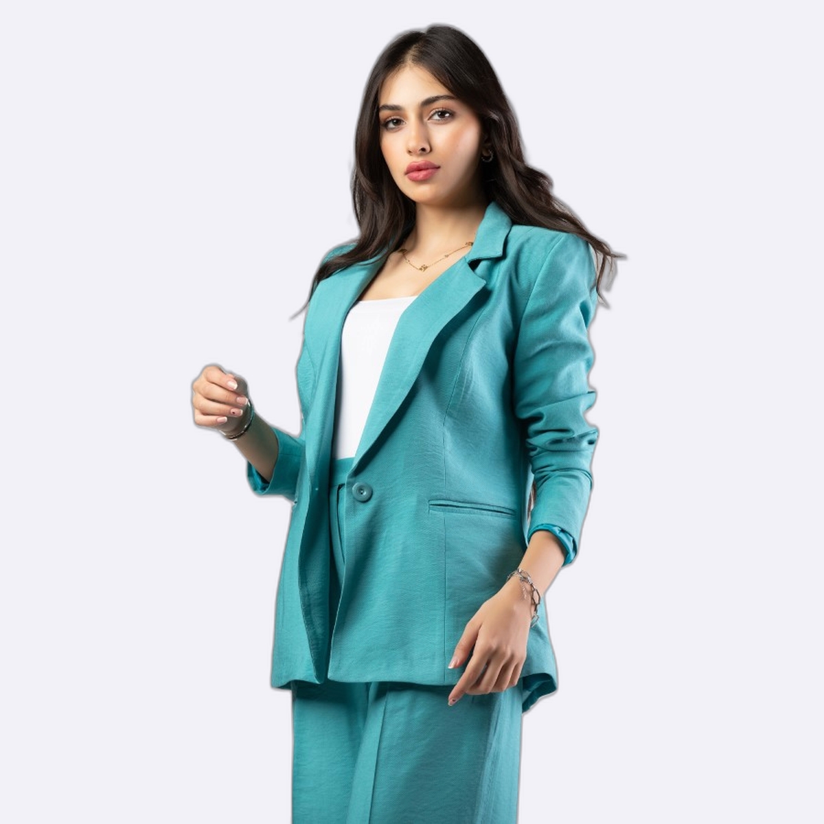 جاكيت رسمي بقصة متقنة يضم ياقة كلاسيكية وجيوب جانبية مخفية ليمنح إطلالة مهنية راقية وعصرية تناسب العمل والمناسبات.