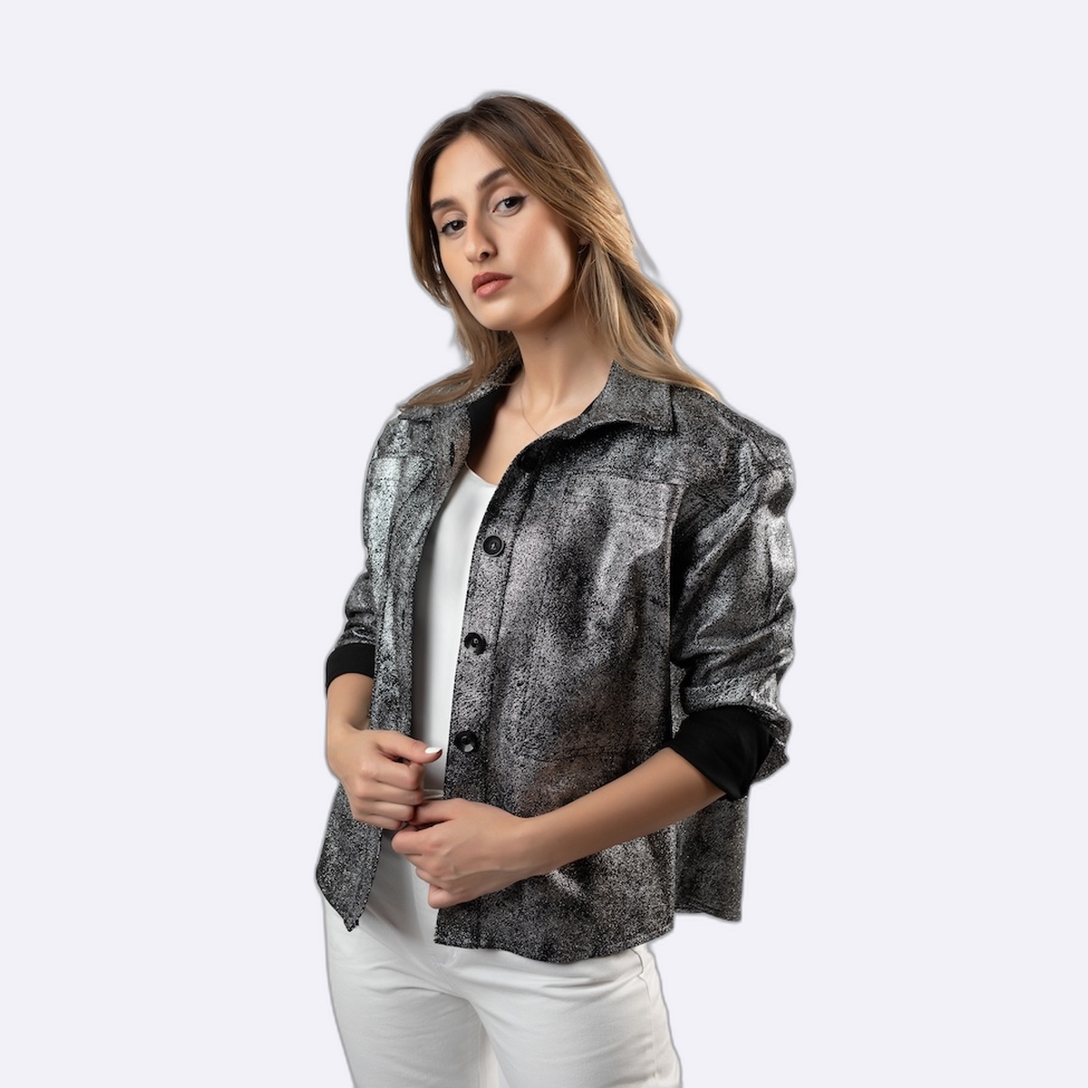 جاكيت رسمي يتميز بتصميم كلاسيكي متقن مع ياقة مدببة وأزرار أمامية مزدوجة وجيوب جانبية بغطاء، يمنح مظهراً مهنياً راقياً يناسب مختلف المناسبات الرسمية.