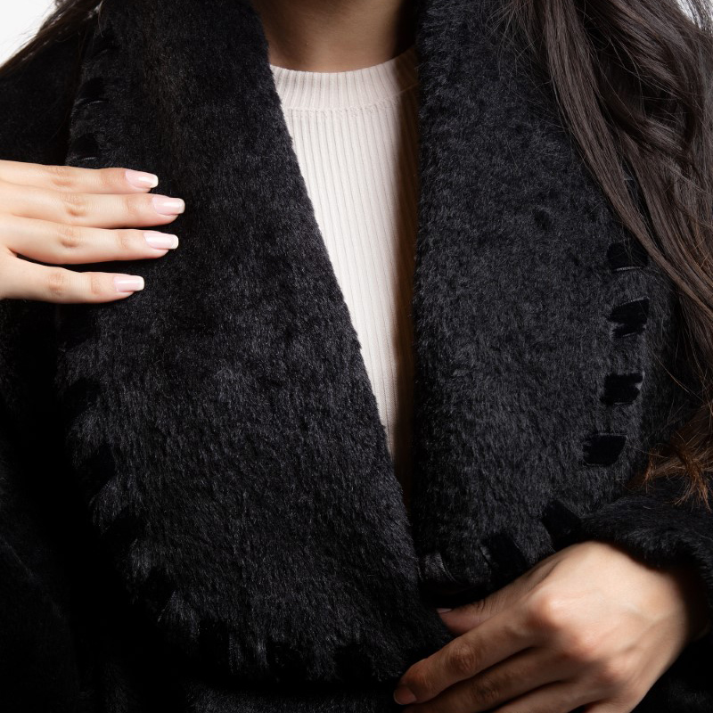 كارديجان ناعم يتميز بياقة عريضة وتفاصيل غرز تطريز يدوية على الحواف بتصميم مريح