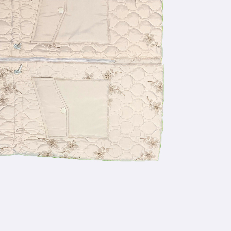 أضيفي لمسة أنيقة إلى مظهرك مع هذه السترة المبطنة المزينة بالزهور. تصميم مريح وعصري يمنحك الدفء والأناقة في آن واحد.