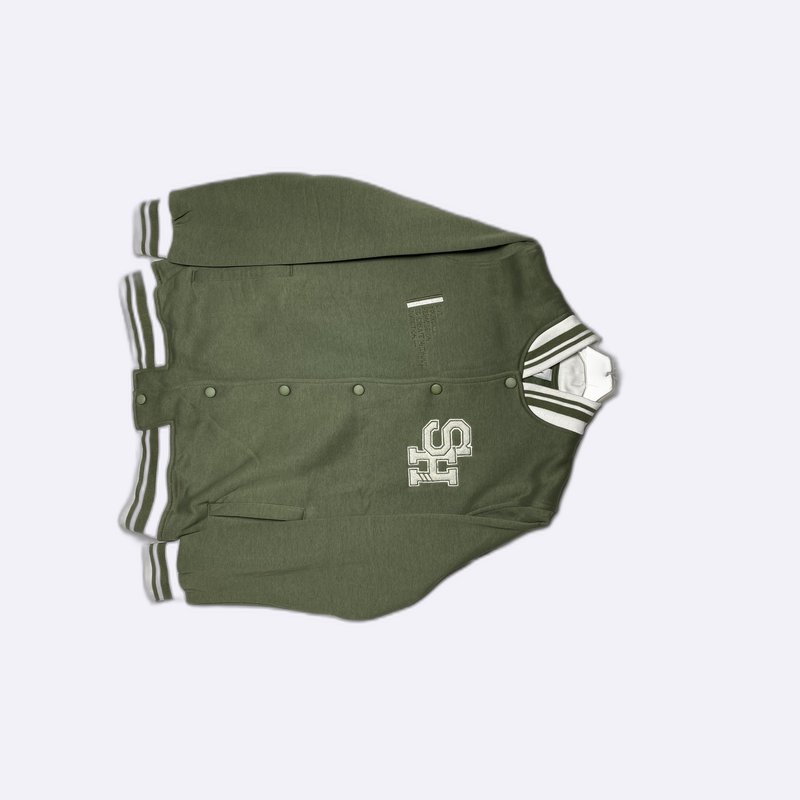 جاكيت رجالي بتصميم جامعي عصري مع أزرار أمامية ولمسات مخططة على الياقة والأكمام، يمنح إطلالة شبابية مميّزة. مناسب للاستخدام اليومي والإطلالات الكاجوال