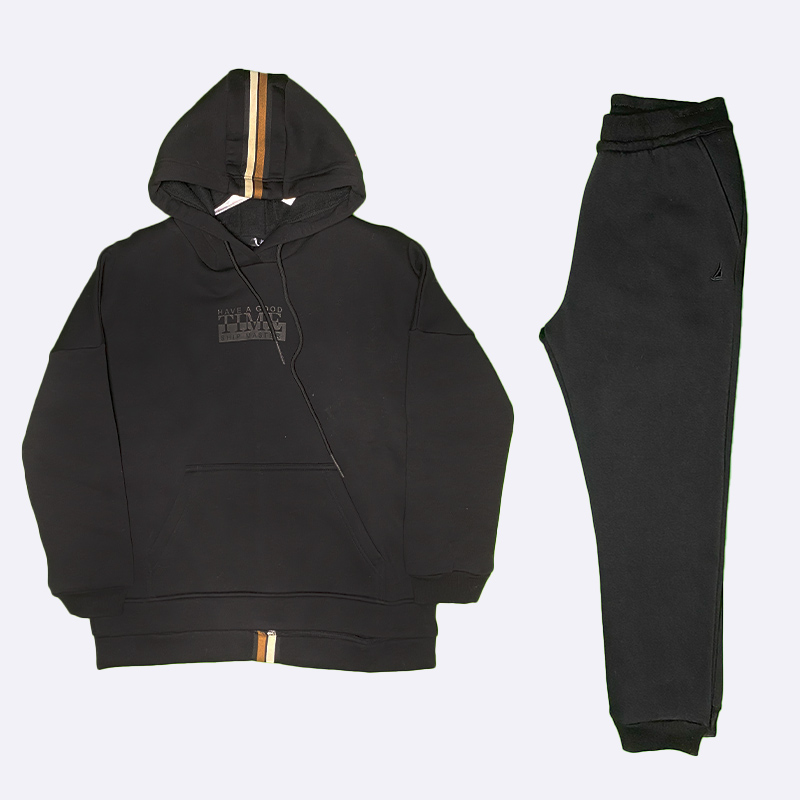 استمتعي بإطلالة عصرية ومريحة مع هذا الطقم الرياضي الأنيق. يتكون الطقم من هودي أنيق وبنطلون رياضي مريح، مثالي للاسترخاء أو الخروج في نزهة غير رسمية.