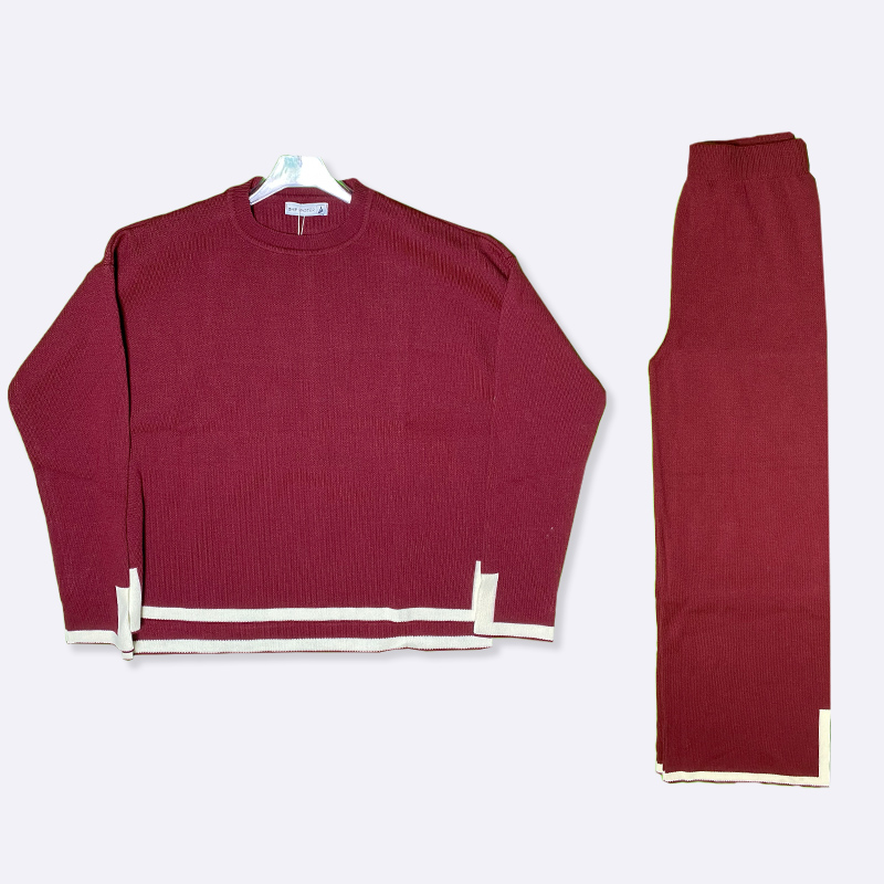 استمتعي بأقصى درجات الراحة والأناقة مع هذا الطقم المحبوك المريح. تصميم عصري بلون عنابي فاخر يمنحكِ إطلالة جذابة ومريحة في آن واحد.