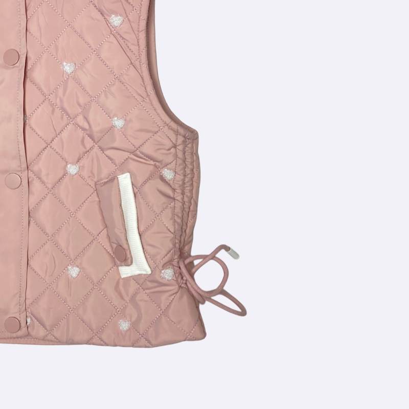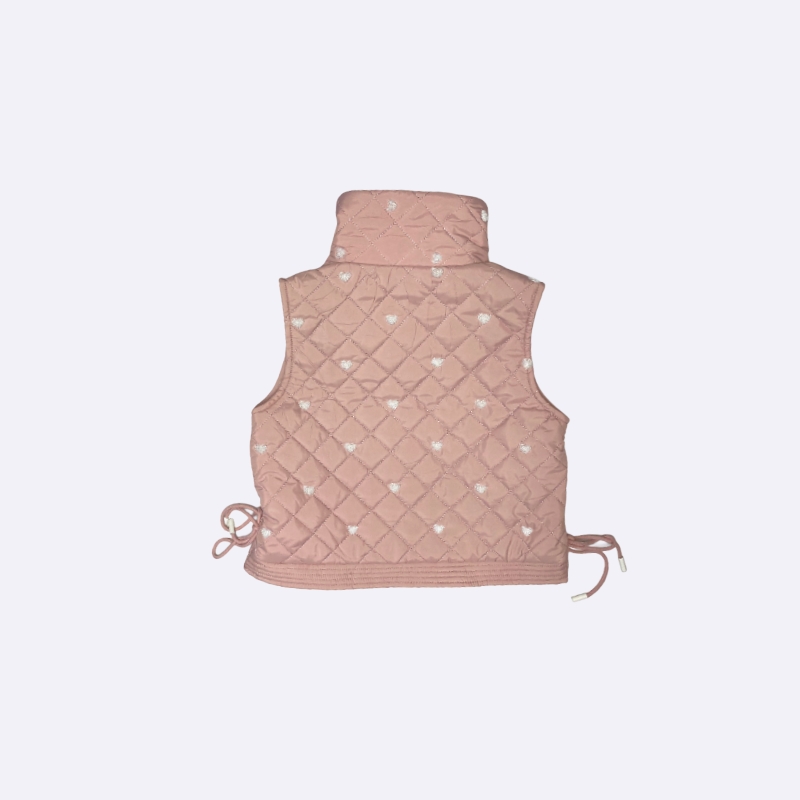 Quilted Heart Embroidered Vest with Drawstring Detail