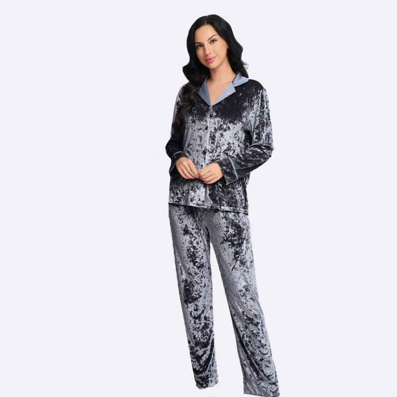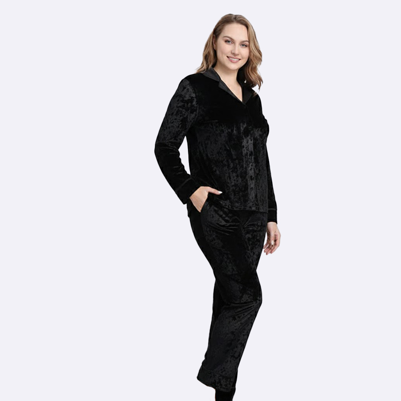 استمتعي بأحلام هانئة مع طقم البيجامة النسائي المخملي الفاخر. تصميم أنيق ومريح يضمن لكِ الدفء والراحة طوال الليل. دللي نفسكِ بنعومة المخمل.
