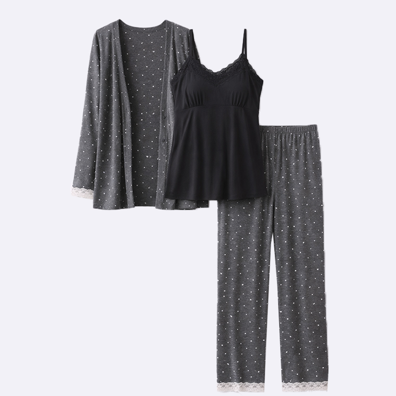 استمتعي بنوم هانئ ومريح مع طقم البيجامة النسائي الفاخر المكون من 3 قطع. تصميم أنيق وجودة عالية لتوفير أقصى درجات الراحة والاسترخاء.