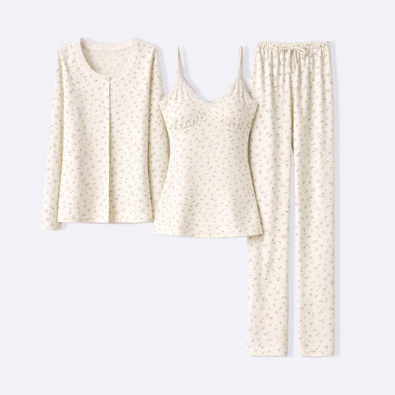 استمتعي بنوم هانئ مع طقم البيجامة النسائي المكون من 3 قطع والمزين بنقشة الزهور. مصنوع من خامات ناعمة ومريحة لتوفير أقصى درجات الاسترخاء.