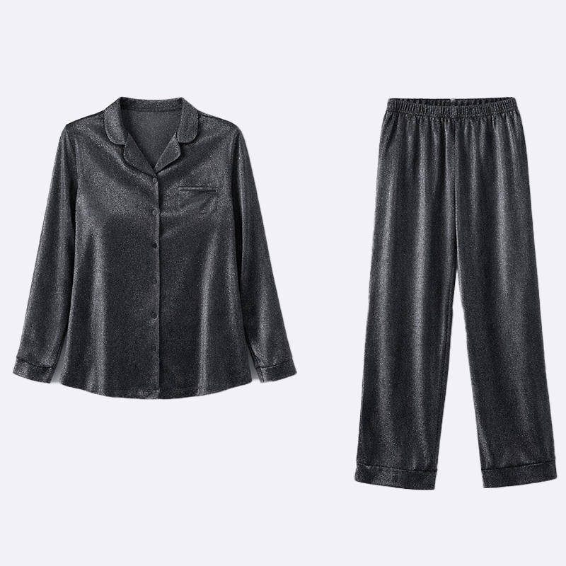 استمتعي بنوم هانئ ومريح مع طقم البيجامة الحريري الناعم. تصميم أنيق ومريح يجعلكِ تشعرين بالاسترخاء طوال الليل.