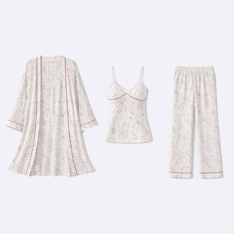 استمتعي بنوم هانئ ومريح مع طقم البيجامة النسائي الأنيق المكون من ثلاث قطع بنقشة الزهور. يتضمن روبًا أنيقًا وقميصًا بدون أكمام وبنطالًا مريحًا، مما يجعله مثاليًا للاسترخاء في المنزل.
