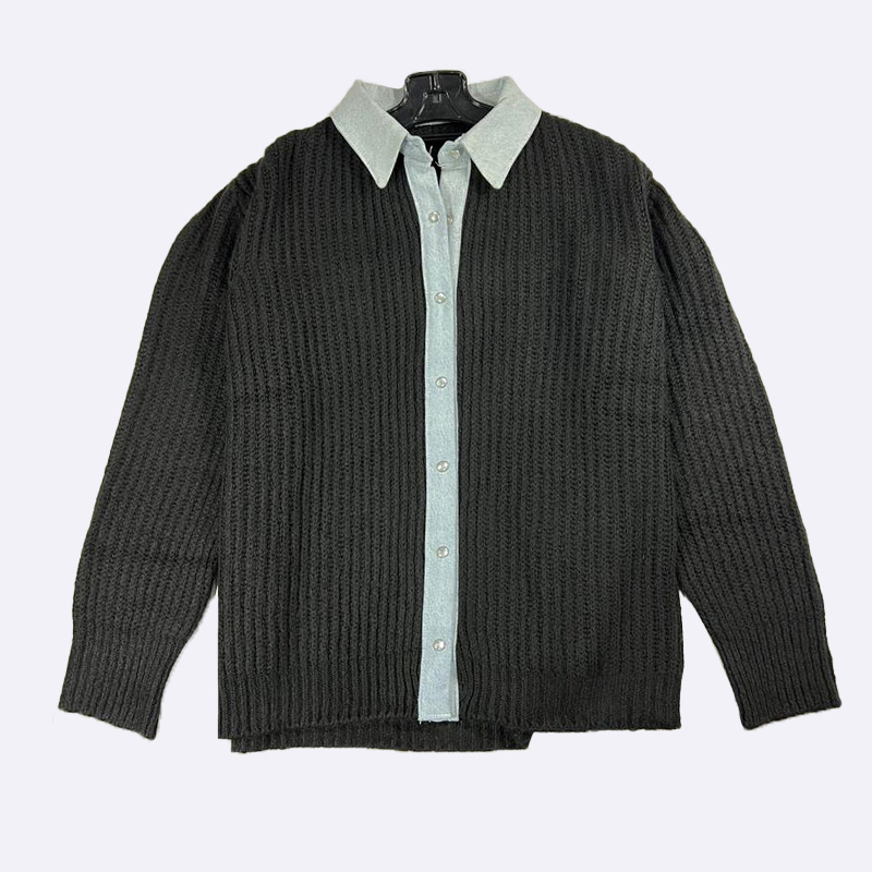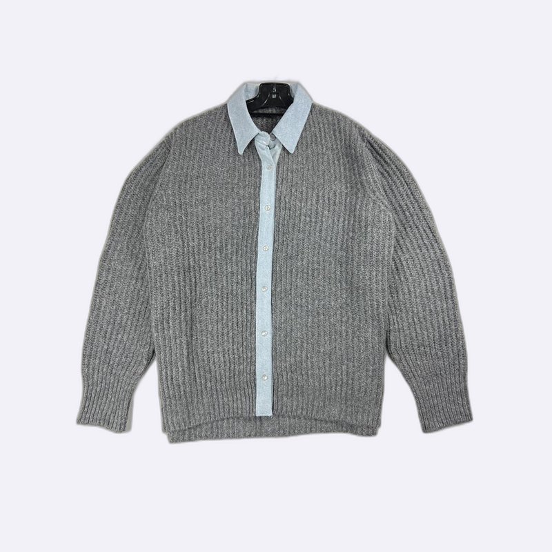 أضيفي لمسة عصرية إلى خزانة ملابسك مع هذا الكارديجان المضلع الأنيق. تصميم فريد بياقة قميص يجعله قطعة مثالية لإطلالة عصرية ومريحة.