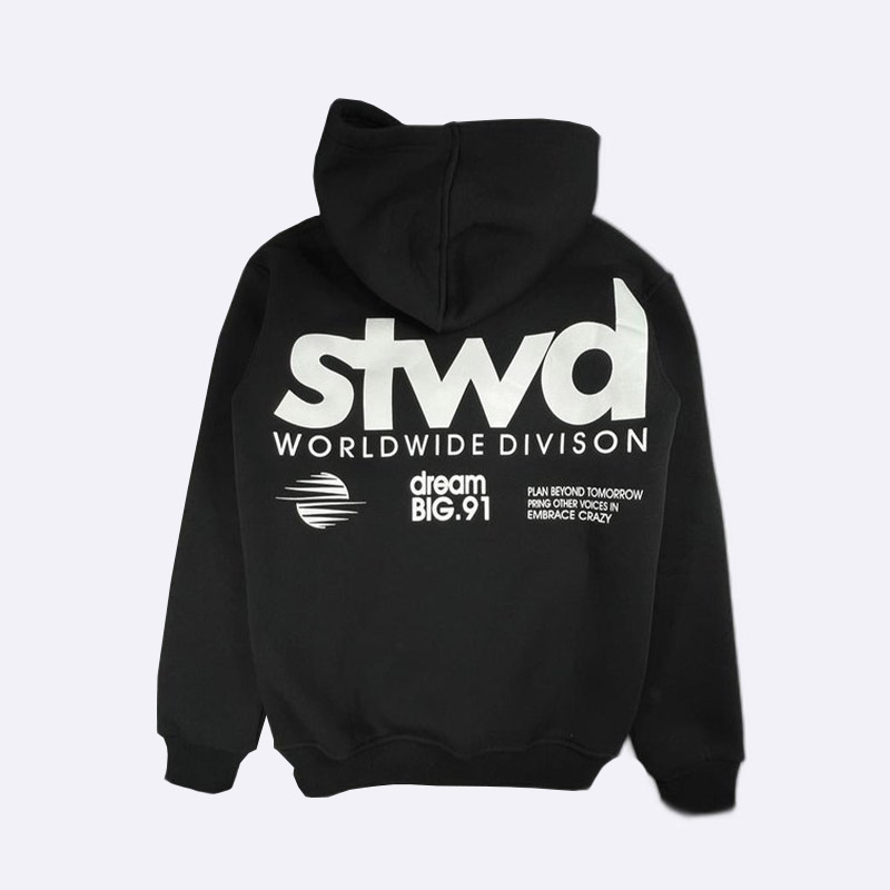 أضف لمسة عصرية إلى خزانتك مع هودي STWD بتصميم فريد. يتميز هذا الهودي المريح برسومات مميزة وشعار عالمي، مما يجعله خيارًا مثاليًا لإطلالة كاجوال أنيقة.