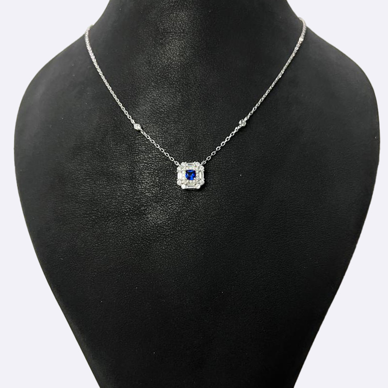 أضيفي لمسة من الأناقة والجمال إلى إطلالتك مع هذه القلادة الرائعة. تتميز بتصميم فريد وبدلاية من الياقوت الأزرق المتلألئ، مما يجعلها مثالية للمناسبات الخاصة واليومية.