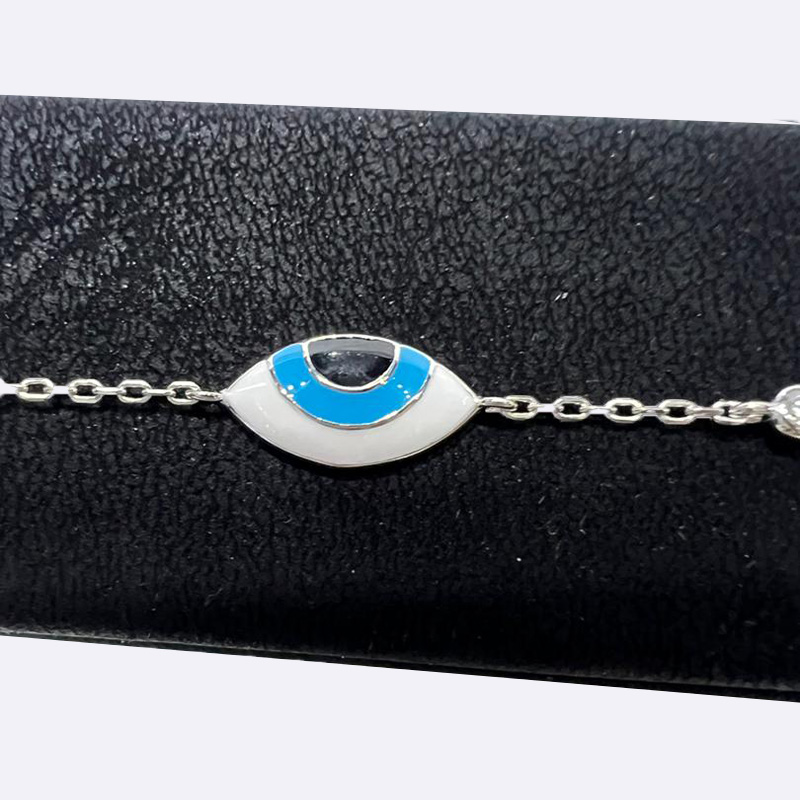 أضف لمسة من الأناقة والحماية إلى مظهرك مع هذا السوار الجذاب بتصميم عين الحسد. يتميز هذا السوار بخرزات زركونيا مكعبة لامعة تضفي عليه لمسة من الفخامة.