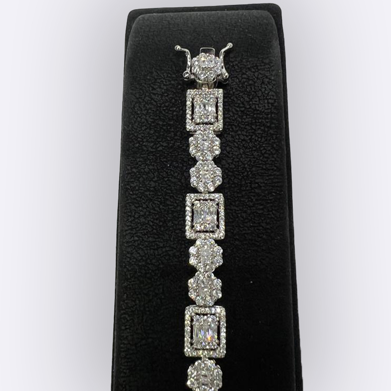 أضيفي لمسة من الرقي إلى إطلالتك مع هذا السوار الأنيق المرصع بالألماس. تصميم فريد يجعله مثالياً للمناسبات الخاصة والسهرات.