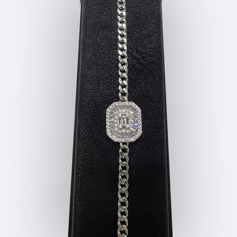 أضيفي لمسة من التألق إلى إطلالتك مع هذا السوار الفضي الأنيق المرصع بالزركونيا المكعبة. تصميم عصري يجعله مثالياً لكل المناسبات.