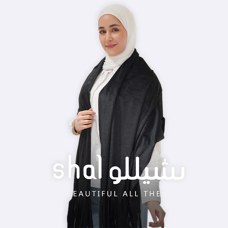 أضيفي لمسة من الأناقة إلى مظهرك مع هذا الشال الأنيق. تصميم فريد بشرابة يجعله مثالياً لكل المناسبات.