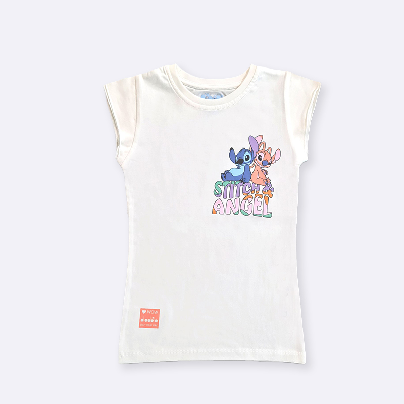 تيشرت بناتي بياقة مستديرة وأكمام قصيرة مزين بطبعة شخصيات كرتونية