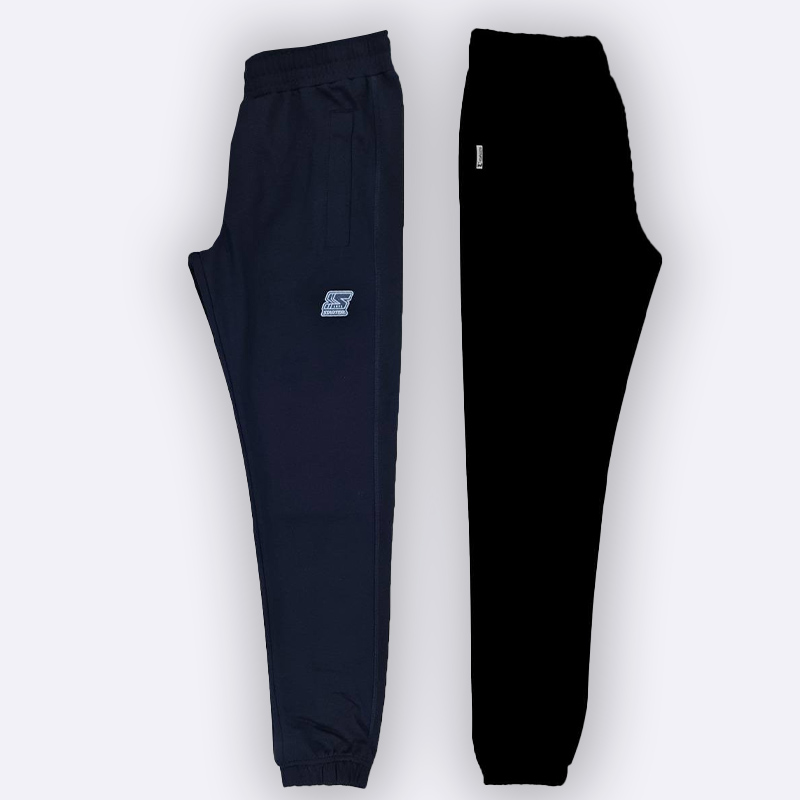 بنطلون رياضي رجالي مريح بتصميم سادة، مصنوع من مزيج 65% قطن و 35% بوليستر. مزود بجيوب وحزام خصر مطاطي. مثالي للارتداء اليومي أو التمرين.
