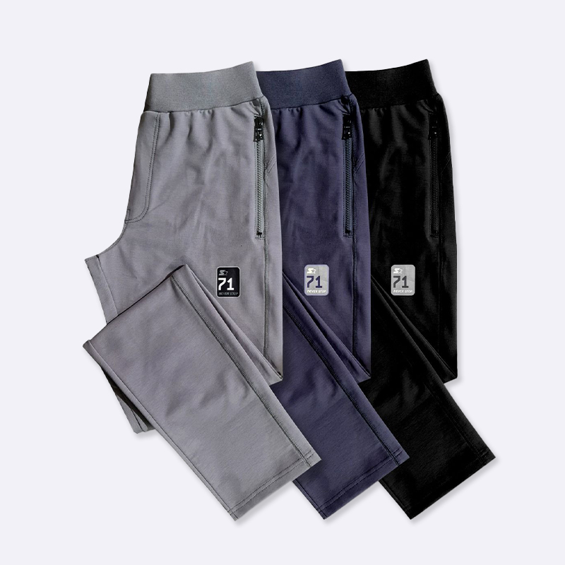 بنطلون رياضي مريح بخصر مطاطي وجيوب جانبية بسحاب مزين بشعار الماركة
