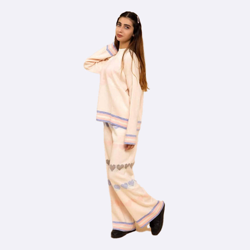 استمتعي بأوقات الاسترخاء بأناقة مع هذا الطقم المريح. تصميم القلوب الرقيقة يضفي لمسة من الدفء والجمال على إطلالتك.