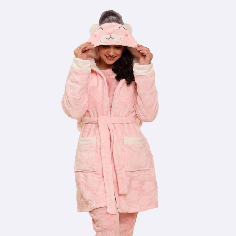استمتعي بالراحة والأناقة مع هذا الطقم الرائع من الروب والبجامة بتصميم كيتي اللطيف. مصنوع من خامات ناعمة ومريحة لتنعمي بأوقات استرخاء لا مثيل لها في المنزل.